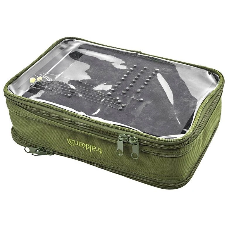 Mit der NXG Tackle and Rig Pouch von unserem preisgekrönten NXG Gepäckbereich halten Sie sich an der richtigen Stelle. Mit internen Klett-Trennwänden können die NXG Tackle and Rig Pouch angepasst werden, um alle Arten von Terminal-Tackle Elemente und Zubehör organisiert, während vorgebundene Rigs von bis zu 11ins auf der 30cm x 20cm EVA Rig-Board sortiert werden können. Klarsichtfelder auf beiden Seiten ermöglichen es dem Benutzer, den Inhalt auf einen Blick zu betrachten, und eine klare Innentasche mit Reißverschluss unterhalb des Rigboard ermöglicht weitere Lagermöglichkeiten.